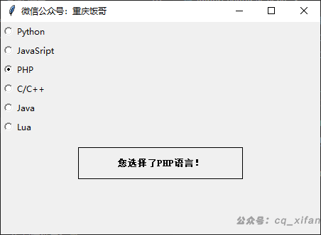 result = messagebox.askokcancel(title='温馨提示', message='微信公众号:重庆饭哥')